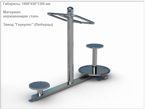 Тренажер полностью изготовлен из нержавеющей стали и отполирован до зеркального блеска! (кроме подшипников и сидений). Такой тренажер не нужно перекрашивать каждый год, он не покроется пятнами ржавчины! Твистер, благодаря вращающимся круглым платформам, отличный тренажер для мышц пресса и спины. Твистер поможет сделать вашу фигуру лучше, а занятия втроем сделают занятия вдвойне интересными. Дамы приглашают кавалеров на танец!!! :)))