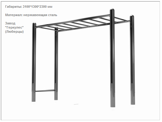 Тренажер полностью изготовлен из нержавеющей стали и отполирован до зеркального блеска! (кроме подшипников и сидений). Такой тренажер не нужно перекрашивать каждый год, он не покроется пятнами ржавчины!Универсальный тренажер. Подходит как для развития силы рук, мышц пресса, разминки, так и для активных игр. Материалы: Нержавеющая сталь.Конструкция имеет радиальные загибы (округление), выполненные для увеличения прочности конструкции. В комплект тренажера входит элемент закладного фундамента.Максимально допустимая нагрузка — 150 кг. Online магазин Royal Sport предлагает купить товар: УТЭ-014 Рукоход одноуровневый. Расценки в Москве — от производителя и качество товара соответствует самым высоким нормам. УТЭ-014 Рукоход одноуровневый – купить в нашем интернет магазине данную продукцию можно двумя способами: