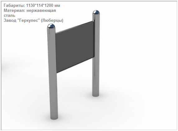 Стенд предназначен для размещения на нем информации, например, о правилах использования тренажеров, правилах поведения и т.д. Материалы: Нержавеющая сталь.