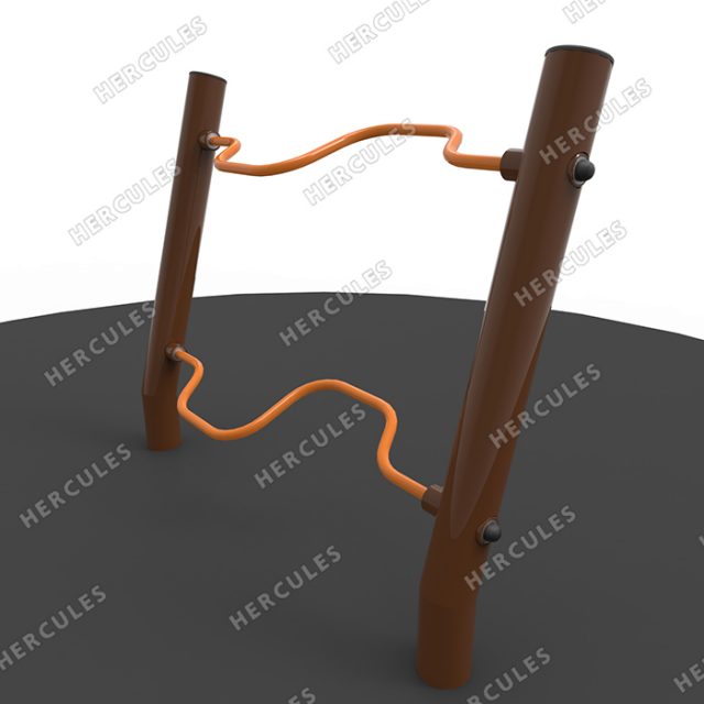 Материалы: Несущая опора — круглая труба из стали общего назначения. Труба Ф114 , Труба Ф27. Все узлы вращения оснащены подшипниками. Тренажер покрашен порошковой краской двух цветов. Комплектация: 1. Два опорных столба с усталновленнымив них корпусами для подшипников; 2. Одна изогнутая ось для вращения двумя руками; 3. Одна вращающаяся изогнутая ось для вращения двумя ногами. Все металлические конструкции изготовлены стали и имеют порошковую окраску. Конструкция имеет радиальные загибы (округление), выполненные для увеличения прочности конструкции. В комплект тренажера входит элемент закладного фундамента. Максимально допустимая нагрузка — 150 кг. —