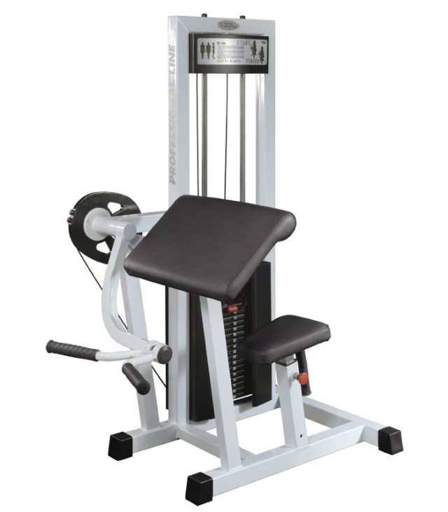 Описание: профиль несущей конструкции 60х60х3 (мм). Тренажер окрашивается порошковой краской. Сидение изготовлено из многослойной фанеры (20 мм), в качестве наполнителя и обивки используется двухслойный пенополиуретан, устойчивый к усадке и высококачественная искусственная кожа. Регулировка сиденья позволяет заниматься на тренажере людям с разными ростовыми характеристиками. Грузоблочный стек тренажера состоит из 17 металлических плит весом по 5кг, и направляющих. Изменение нагрузки происходит при помощи селектора (фиксатора). Для приведения в движение грузов используется трос 5 мм в пвх оплетке с усилием на разрыв 500 кг с макс. Нагрузкой 800кг. Скрытая система подшипников и амортизаторов обеспечивает плавность хода и шумопоглащение. Тренажер оснащен памяткой технического обслуживания, амортизирующими подпятниками, не требующими крепления к полу.