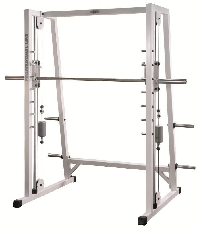 Профиль несущей конструкции 60х60х3 (мм). Тренажер окрашивается порошковой краской. Для приведения в движение грузов используется трос 5 мм в пвх оплетке с усилием на разрыв 500 кг с макс. нагрузкой 800кг. Тренажер оснащен памяткой технического обслуживания, шестью накопителями для дисков, амортизирующими подпятниками, не требующими крепления к полу.