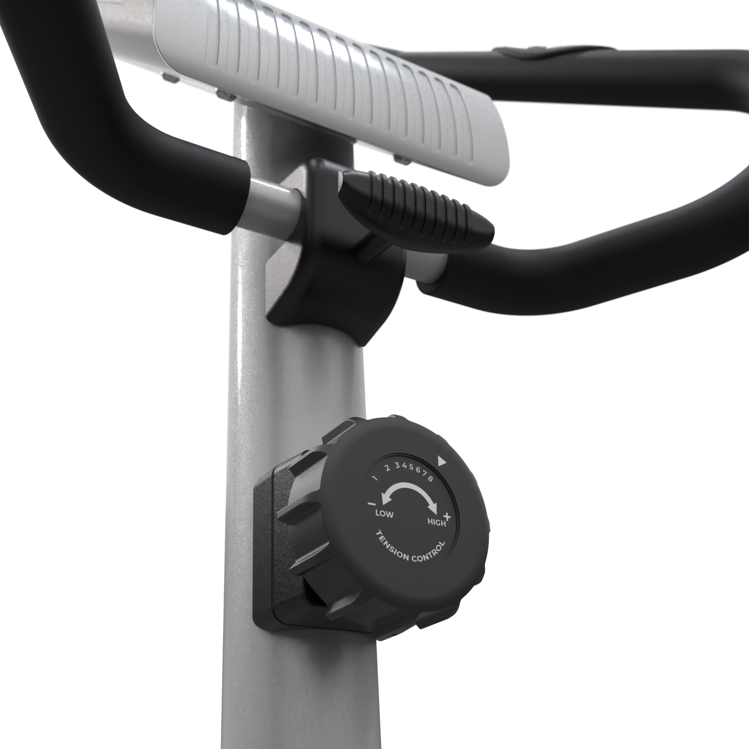 Маховик весом 8 кг и датчики измерения пульса на руле позволяют контролировать частоту сердечного ритма во время движения. Эргономичное повышенной комфортности сиденье регулируется по горизонтали и 6 уровнях по вертикали. Регулировка положения руля осуществляется путем регулировки угла наклона.