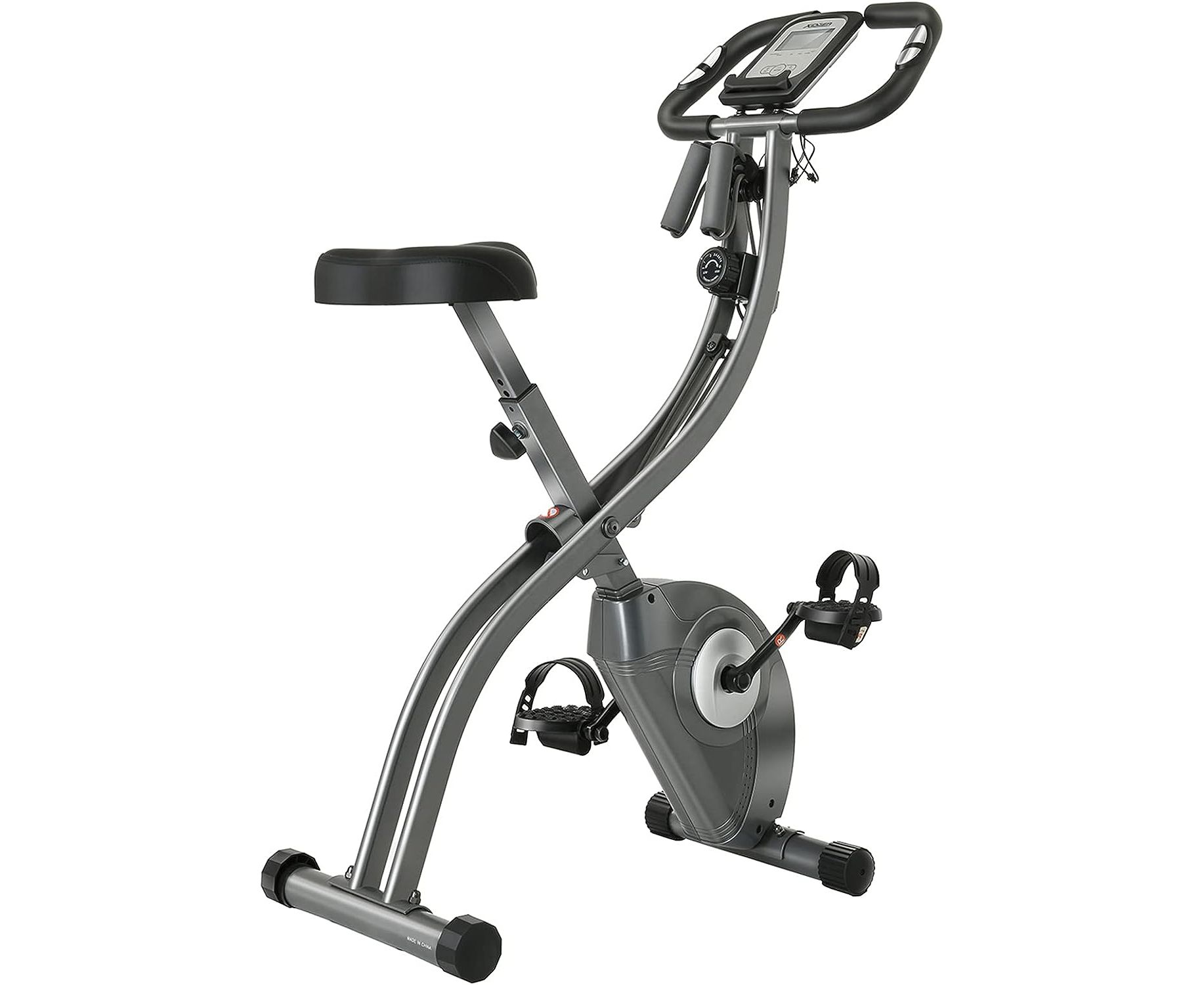 Максимальный вес пользователя до 120 кг. Велотренажер имеет складную конструкцию, что позволяет удобно хранить его в домашних условиях. Сиденье и спинка из полиуретана обеспечивают комфорт во время тренировки.