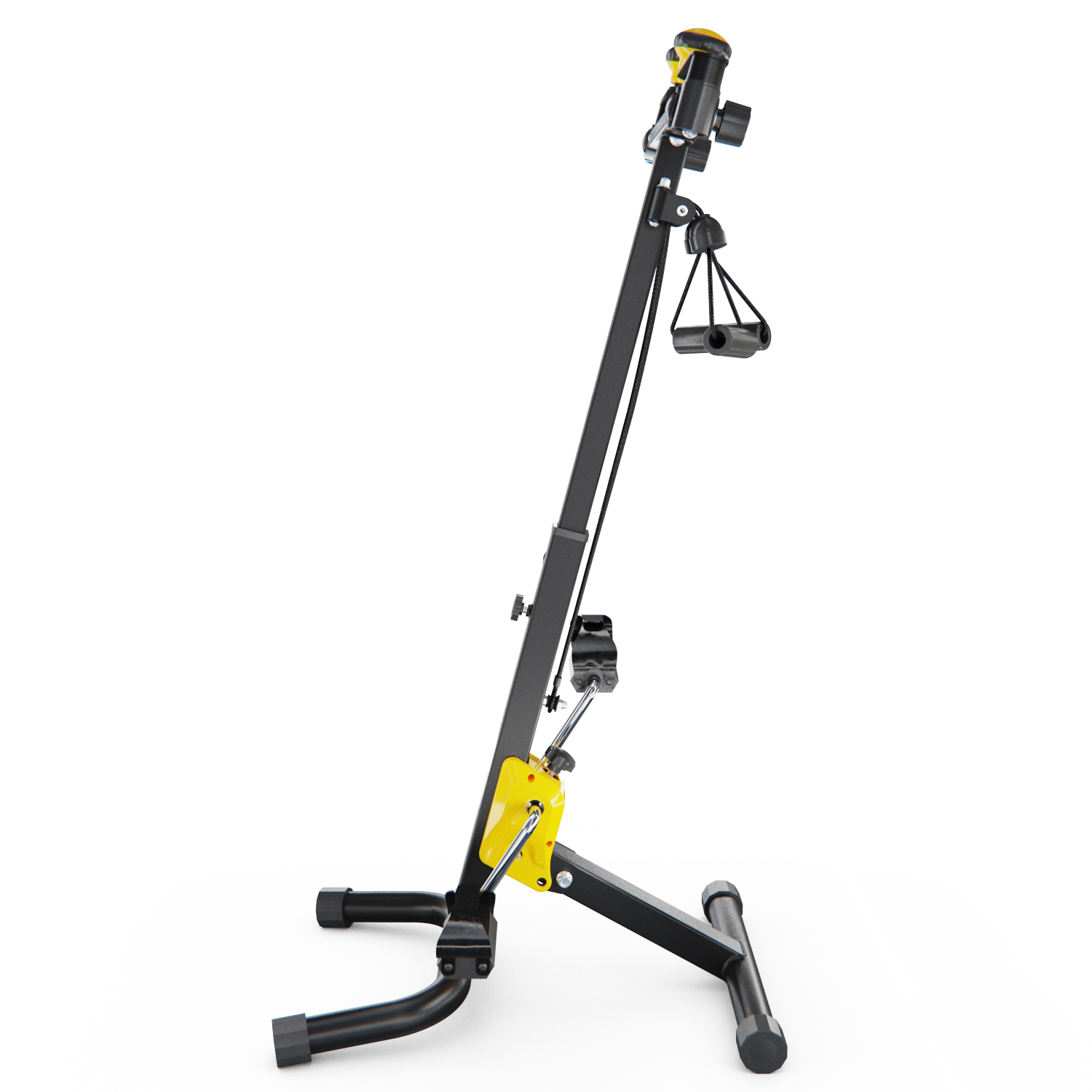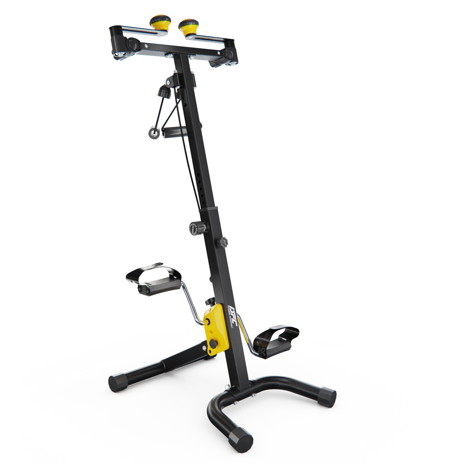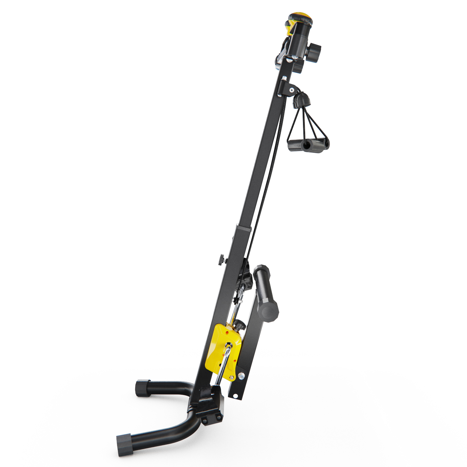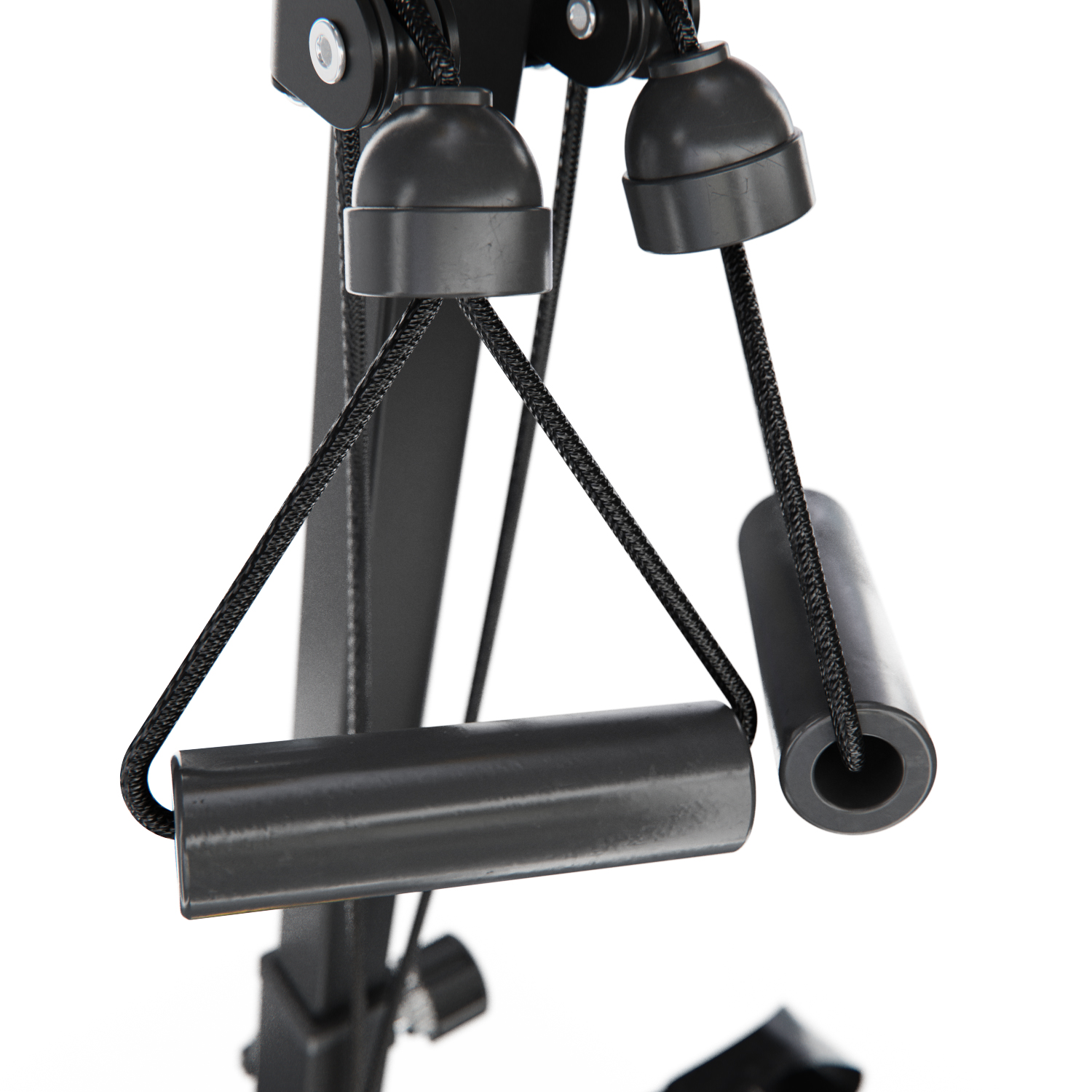 Многофункциональная модель позволяет тренировать как руки, так и ноги одновременно или врозь. Максимальный вес пользователя до 100 кг. Эспандеры в комплекте. Ручки тренажёра регулируются по горизонтали. Высота регулируется от 86 до 98 см в 8-ми положениях.