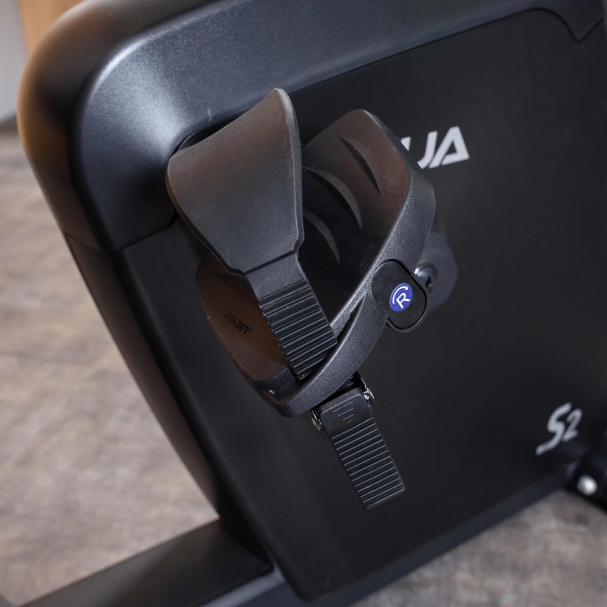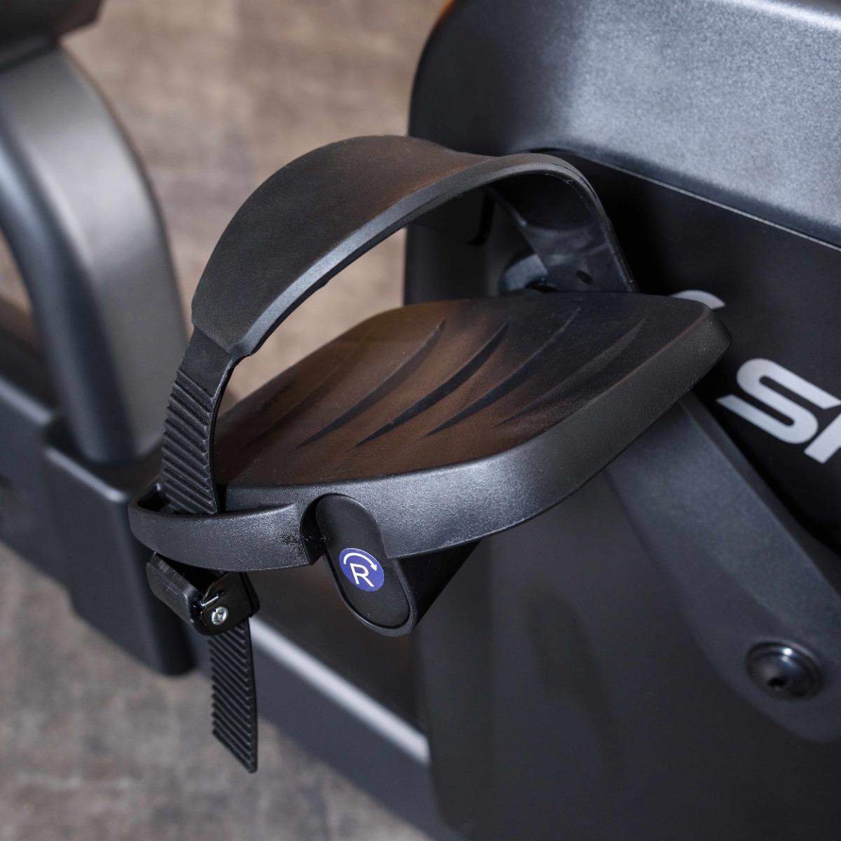 Педали велотренажера выполнены из высокопрочного пластика. Для надежной фиксации стоп поверхность педалей имеет протектор, на педалях закреплены ремни из эластичного пластика с регулировочными отверстиям.