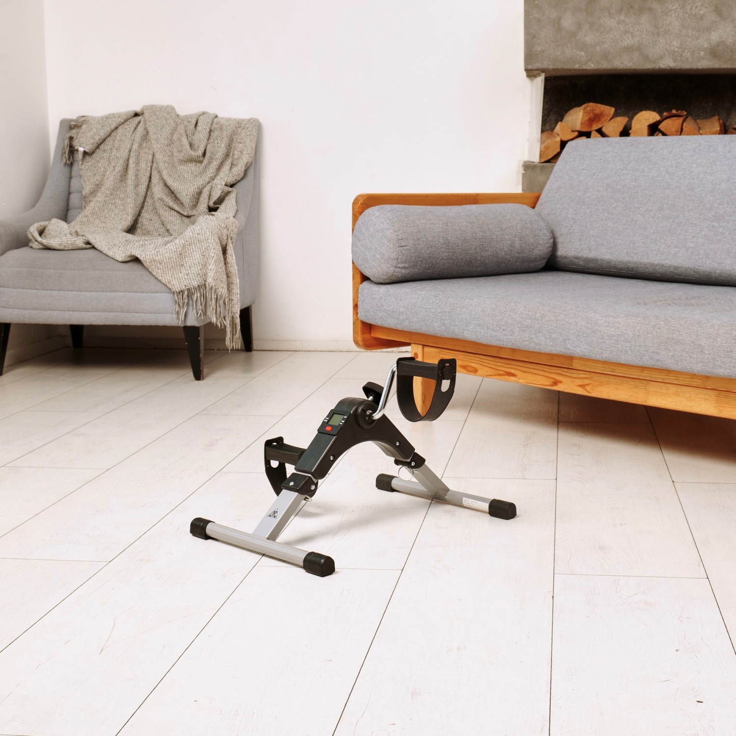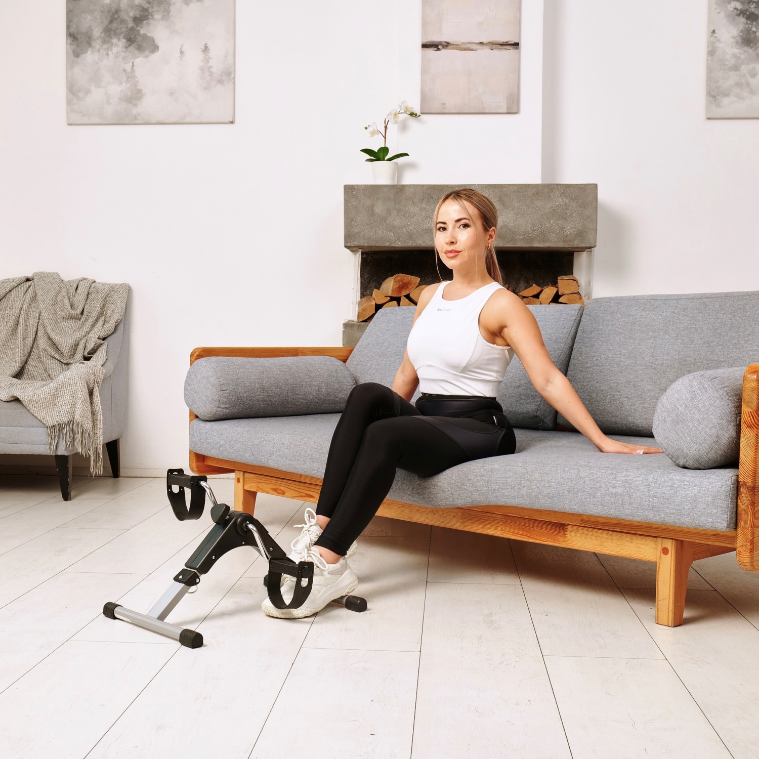 Самый простой и надежный мини-велотренажер для домашних тренировок. Идеально подходит для тренировки рук и ног. Широкие педали с регулируемыми ремешками.