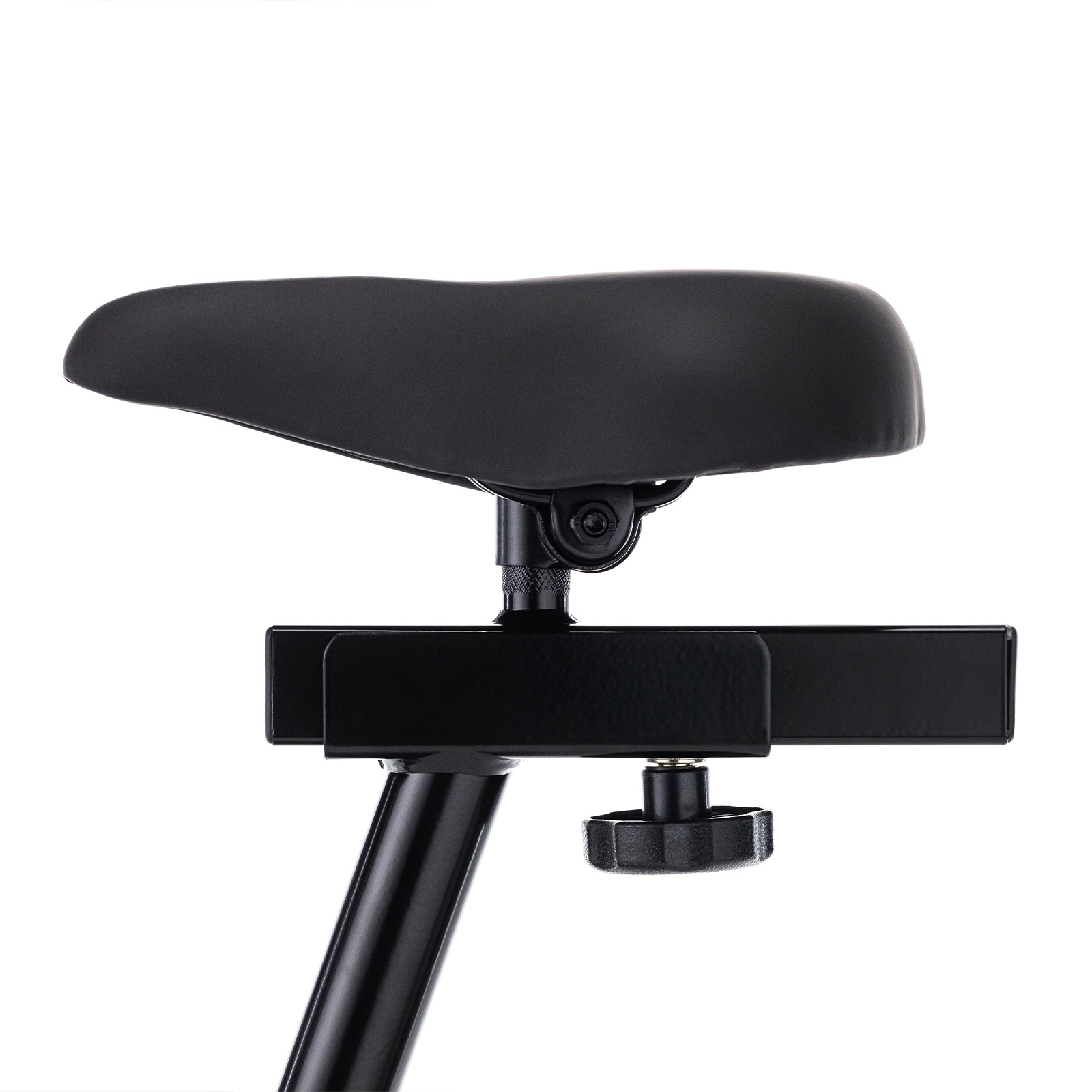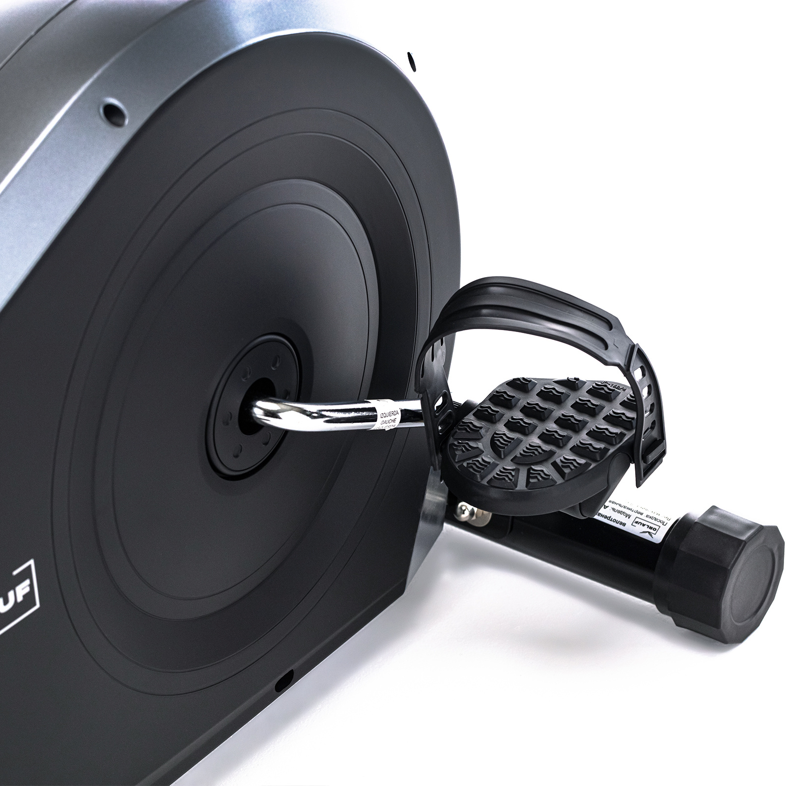 Велотренажер разработан с учетом анатомических особенностей: вертикальная посадка снижает нагрузку на спину и суставы, а педали с рифленой поверхностью и регулируемыми ремешками создают надежную фиксацию стопы. Информативный дисплей отображает все необходимые параметры тренировки, включая пульс, который измеряется встроенными сенсорными датчиками.