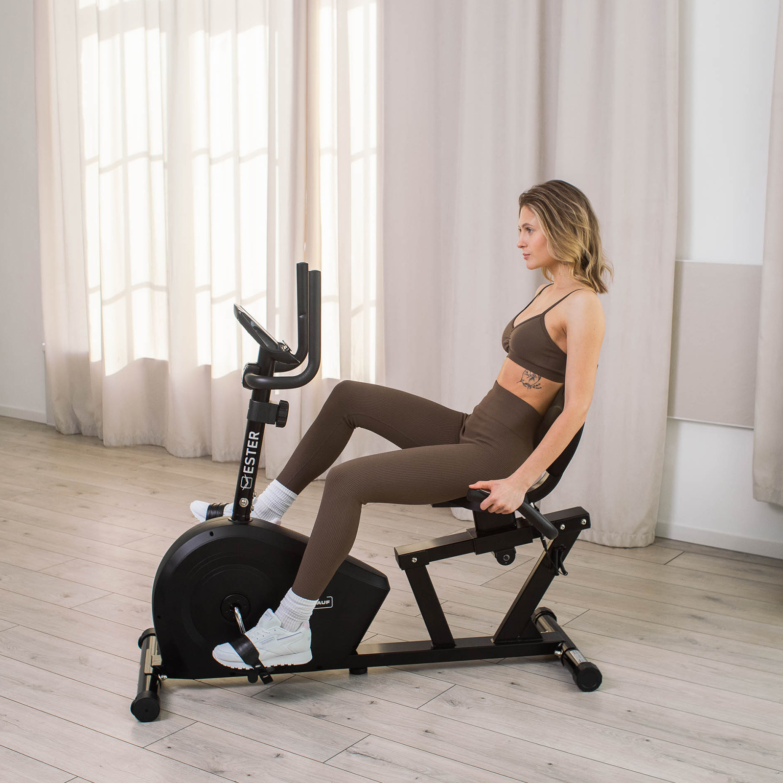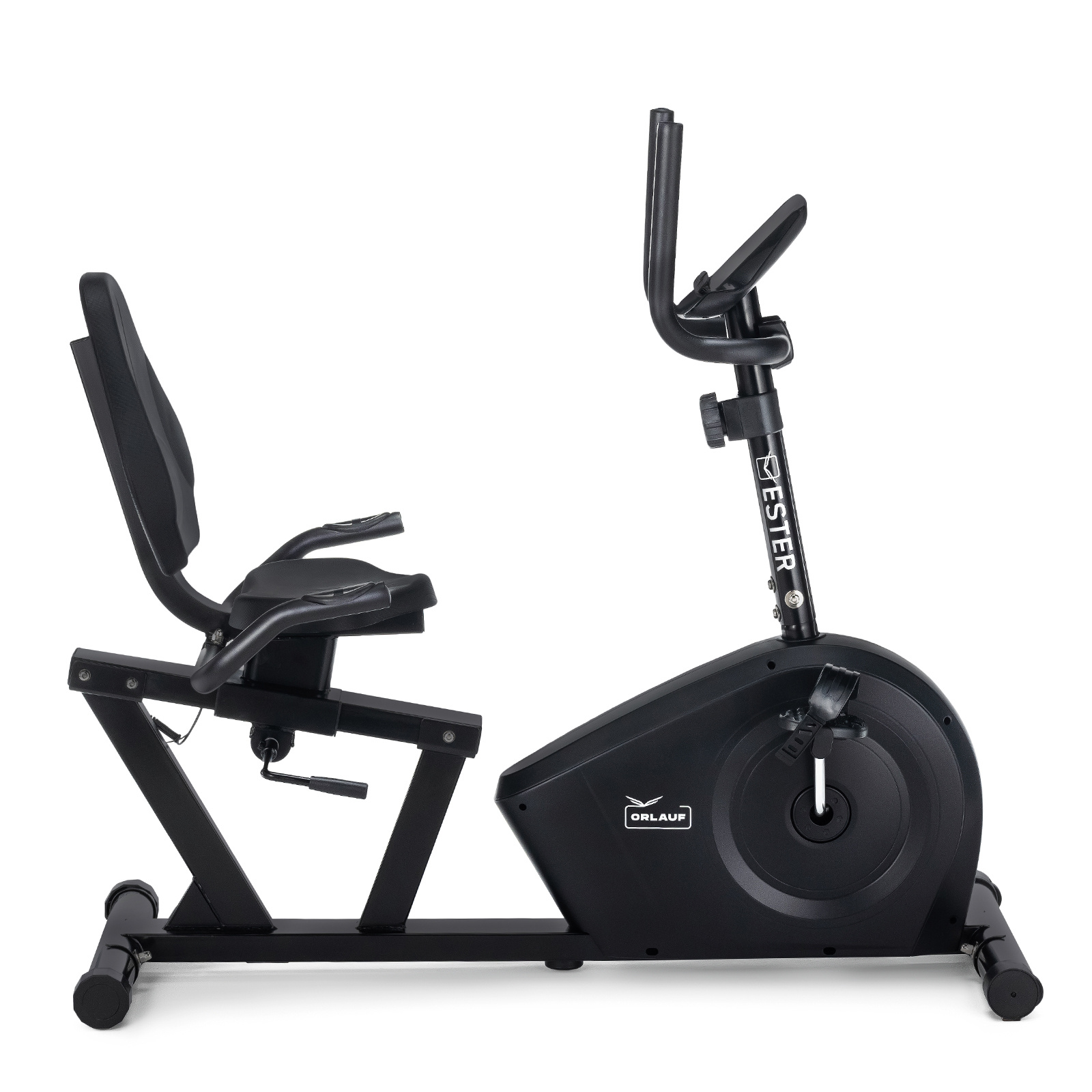 Orlauf Ester – компактный горизонтальный велотренажер для дома с тяжелым маховиком. Он подходит для тренировок средней и высокой интенсивности. Максимальный вес пользователя – до 130 кг.