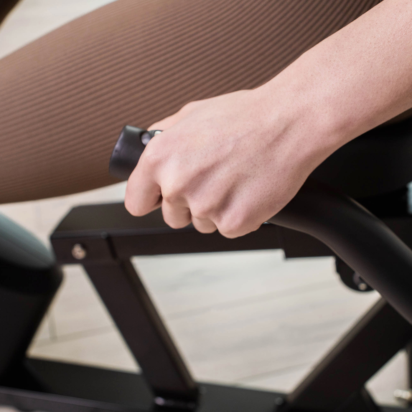 Широкое анатомические сиденье и мягкая спинка снимают нагрузку с позвоночника во время тренировки.