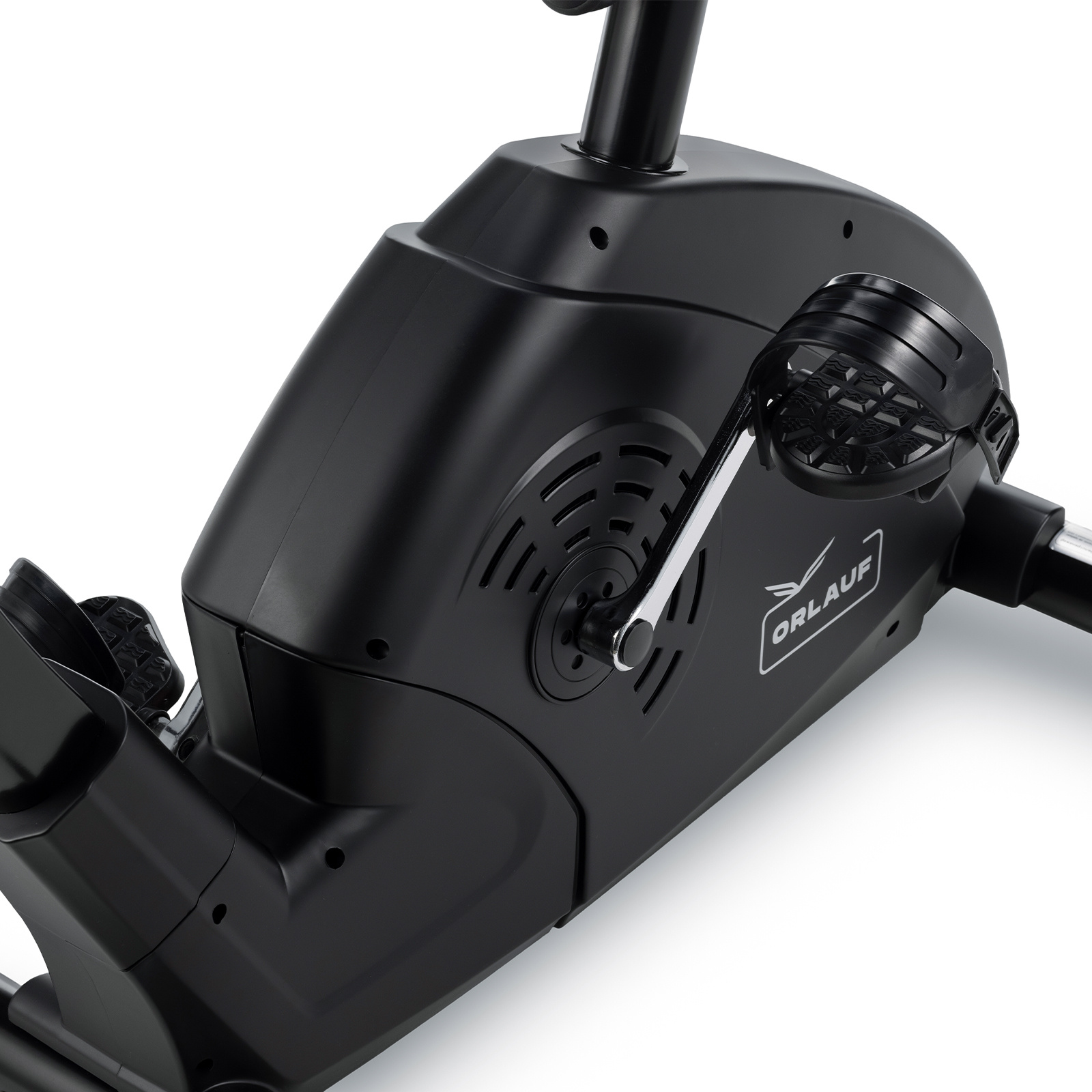 Orlauf Hase — вертикальный велотренажер с магнитной системой нагружения. За счет тяжелого маховика он подходит для интенсивных тренировок. Максимальный вес пользователя — 130 кг.