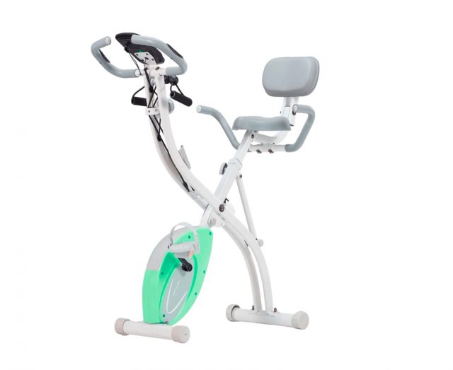 Велотренажёр модели X-Bike нежно-зеленого цвета предназначен для пользователей с максимальным весом до 110 кг, что делает его универсальным вариантом для домашнего использования.