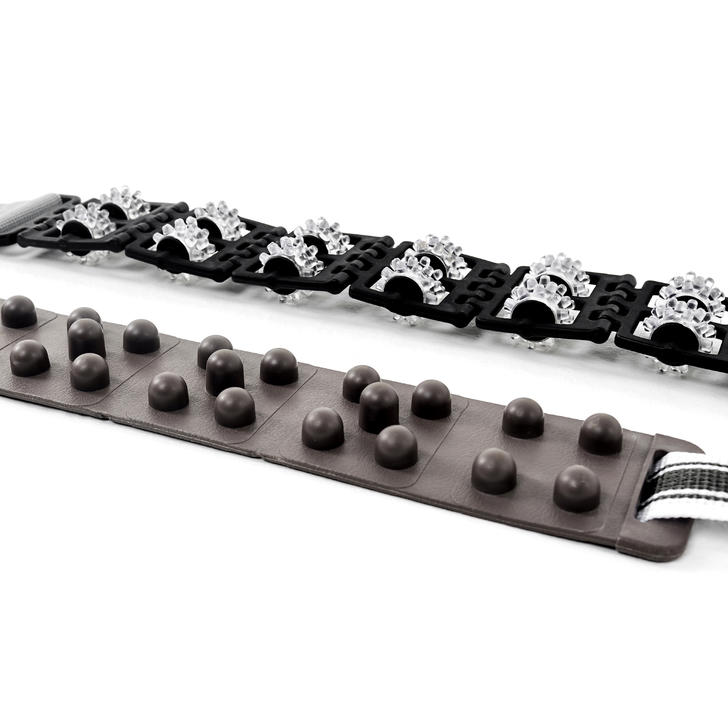 Рабочая часть — специальный пояс с округлыми выпуклостями для массажа, поставляется в комплекте. Его можно регулировать по длине при необходимости. Для удобства и безопасности тренировки на передней консоли предусмотрен поручень, за который необходимо придерживаться во время работы тренажёра.