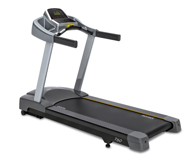 VISION T60 (более известная как JOHNSON T7000 PRO) — одна из самых популярных дорожек коммерческого уровня в России и мире. Тренажер отлично зарекомендовал себя надежным многолетним использованием в залах средней и высокой проходимости — процент отказа электрики и электроники составляет менее 1%. Приобретая дорожку VISION T60, покупатель получает, пожалуй, лучшее на сегодняшний день соотношение «цена-качество» в сегменте коммерческих беговых дорожек. Рама дорожки VISION T60 надежна и с запасом выдерживает пользователя весом 160 кг. Она построена на тяжелой высокопрочной станине (Extra-Heavy Gauge) с использованием пропитанной воском деки толщиной 25.4 мм. и двухслойного полотна коммерческого уровня со сложным многослойным полимерным плетением. Сердце T60 — двигатель собственного производства — настолько хорош, что на него распространяется полноценная 3-ех летняя гарантия без ограничения пробега. Комфорт тренировки обеспечивается большой площадью бегового полотна размером 160*51 см., настроенными на оптимальную жесткость эластомерами различной плотности (рабочая поверхность дорожки разделена на 4 зоны, каждая из которых имеет свой уровень амортизации для имитации естественной нагрузки на стопу во время бега), скоростным диапазоном от 0.8 до 20 км./ч. и электрически изменяемым углом наклона от 0 до 15%. LED консоль, состоящая из одного большого дисплея для вывода профиля тренировки и пяти второстепенных дисплеев с остальными параметрами, максимально информативна и имеет простую понятную навигацию. В предустановленный пакет входят 9 тренировочных режимов — помимо классических, здесь есть пульсозависимая программа, программа снижения веса и фитнес-тест, созданный на основе так называемого Gerkin-протокола (фитнес-тест Пожарной Службы США).