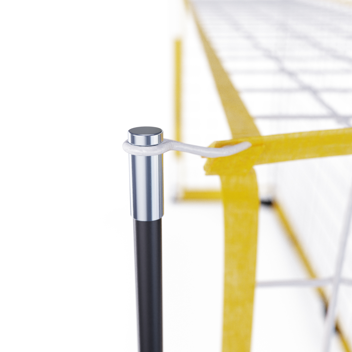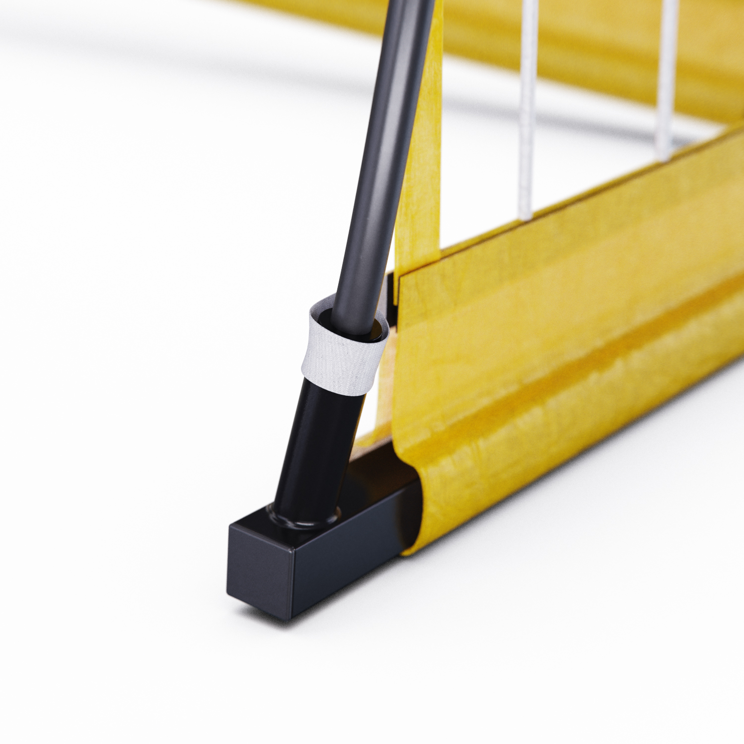 Прочная рама и сетка изготовлены из высококачественных материалов, таких как стекловолокно и сталь, обеспечивая надёжность и долговечность конструкции. Традиционная прямоугольная форма отверстий и гибкие стойки гарантируют стабильность и упругость ворот. Двухслойная сетка обладает высокой прочностью, выдерживая сильные удары.