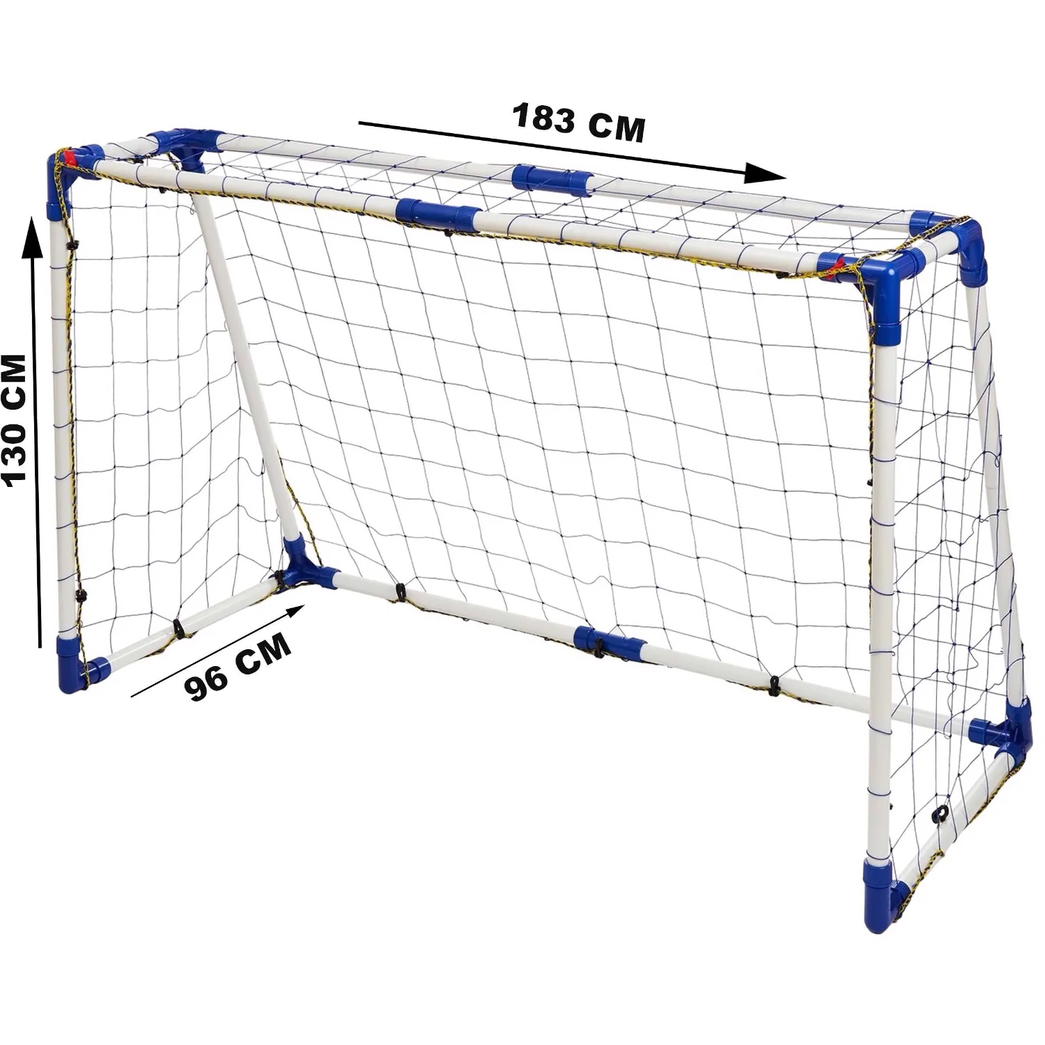 Размеры ворот (183 х 130 х 96 см) делают их идеальными как для детей, так и взрослых. Они изготовлены из ПВХ-труб диаметром 53 мм с защитой от ультрафиолетового излучения, которая прошла необходимые тесты в ЕС на отсутствие фталатов. Фитинги для соединения труб сделаны из усиленного на 40% полипропилена для дополнительной прочности.