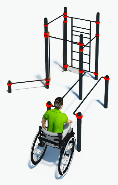 — параллельные брусья, с удобным изгибом жердей, для въезда на кресло-коляске. Расстояние между жердями 550 мм, высота установки 1100 мм. У наивысшего турника-перекладины, вдоль опор, предусмотрены спусковые поручни. Все элементы зафиксированы на вертикальных опорных стальных столбах необходимой высоты, диаметром 108 мм, при помощи стальных хомутов. Стоимость указана для базового варианта, без монтажа. Интернет-магазин Royal Sport предлагает купить товар: W-7.05 Комплекс для инвалидов-колясочников VICTORY. Цены в Москве — от производителя и качество товара соответствует самым высоким нормам. W-7.05 Комплекс для инвалидов-колясочников VICTORY – купить в нашем интернет магазине данную продукцию можно двумя способами: