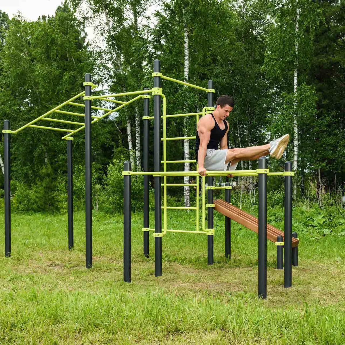 Уличный воркаут-комплекс W237 ZAVODSPORTA* предназначен для установки на уличных спортивных площадках с учетом интенсивной эксплуатации в разных климатических условиях.