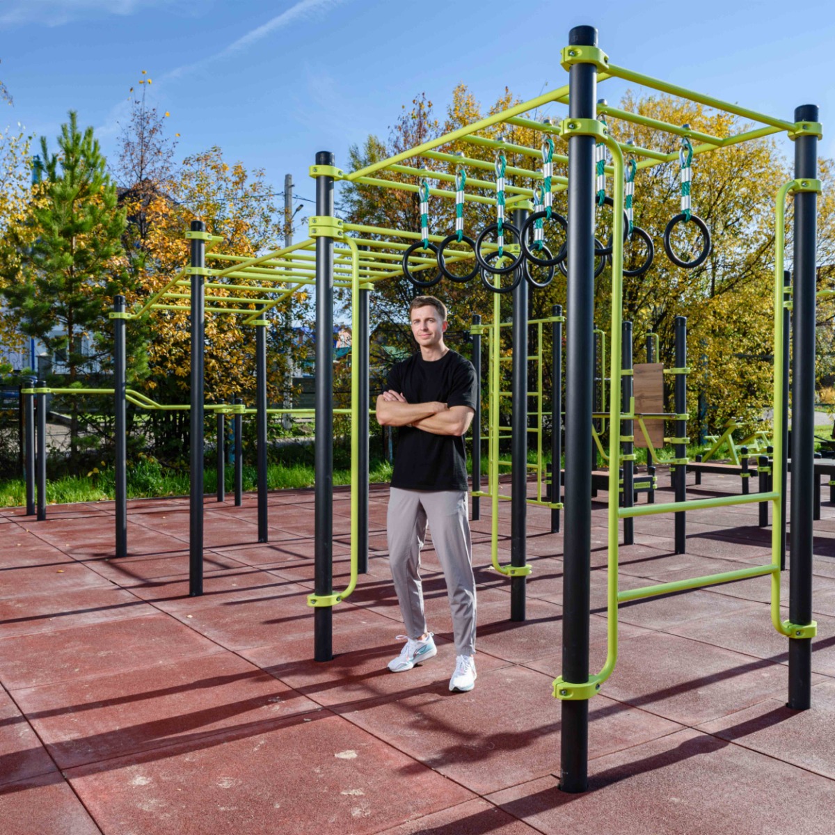Уличный Рукоход с изменением высоты с подвижными кольцами (разноуровневый) ZAVODSPORTA* предназначен для установки на уличных спортивных площадках с учетом интенсивной эксплуатации в разных климатических условиях.
