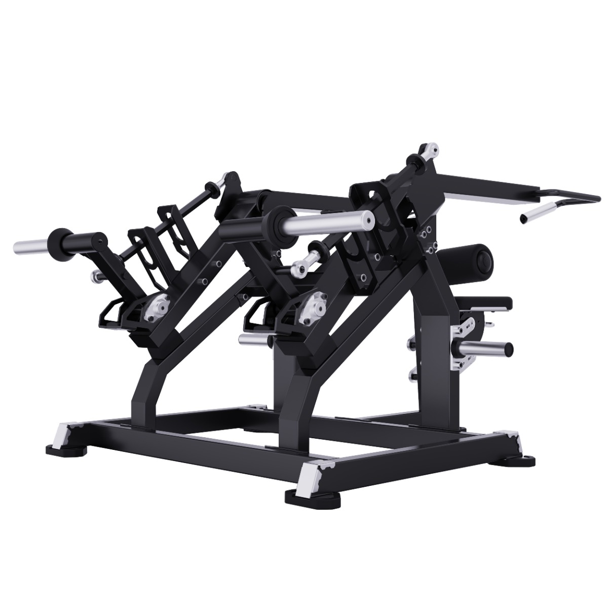 На подвижных рычагах для работы со свободными весами установлено два литых хромированных накопителя из толстостенной стальной трубы для дисков с посадочным диаметром 50 мм.