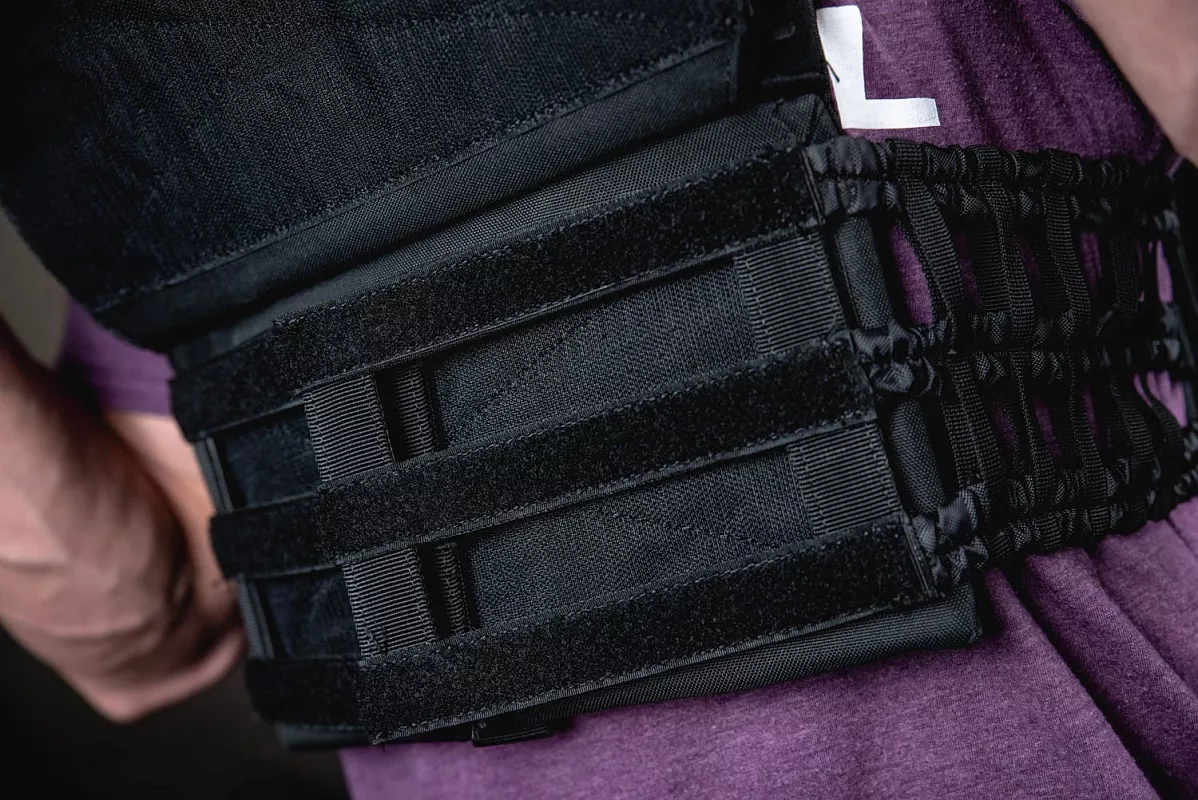Жилет изготовлен из нейлона. В комплекте идёт две пластины, одна размещается в передней панели, вторая в задней. Пластины поджимаются липучками. Подушечки наплечных лямок уменьшают трение, регулируемые натяжные ремни улучшают стабильность, а конструкция подушечек на груди и спине обеспечивают «вентиляцию тела» и комфорт на протяжении всей тренировки. Атлету не нужно жертвовать комфортом и подвижностью, использую жилет с пластинами от компании YOUSTEEL. Возможность регулировки на поясе за счет тянущихся камербандов. На жилете имеются VELCRO (липучки) панели для крепления патчей.