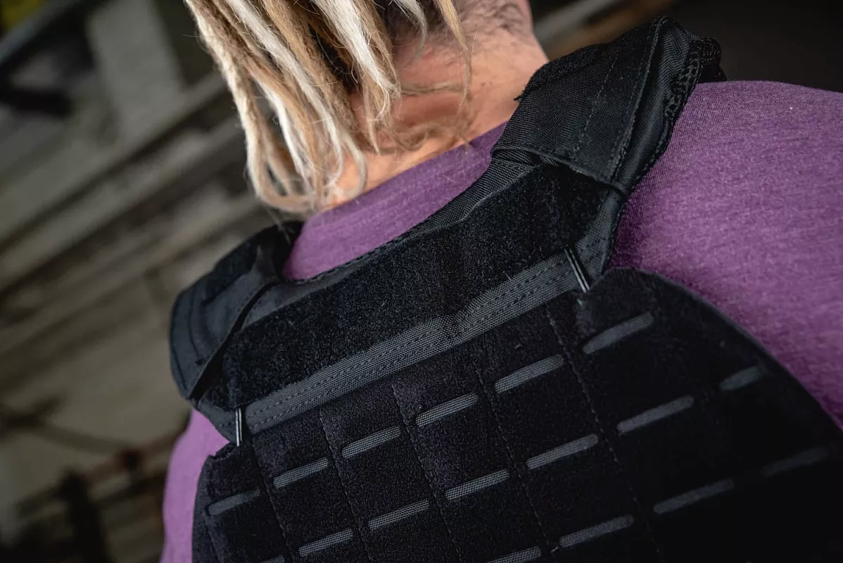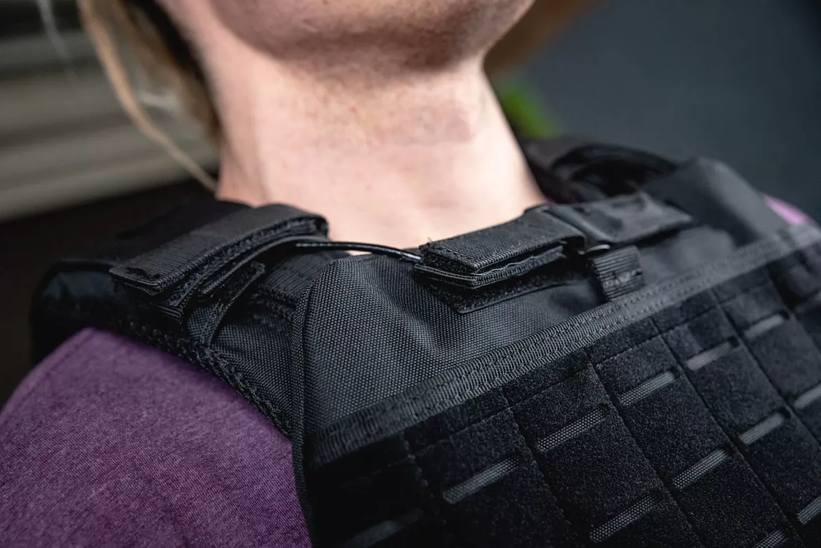 Жилет изготовлен из нейлона. В комплекте идёт две пластины, одна размещается в передней панели, вторая в задней. Пластины поджимаются липучками. Подушечки наплечных лямок уменьшают трение, регулируемые натяжные ремни улучшают стабильность, а конструкция подушечек на груди и спине обеспечивают «вентиляцию тела» и комфорт на протяжении всей тренировки. Атлету не нужно жертвовать комфортом и подвижностью, использую жилет с пластинами от компании YOUSTEEL. Возможность регулировки на поясе за счет тянущихся камербандов. На жилете имеются VELCRO (липучки) панели для крепления патчей.