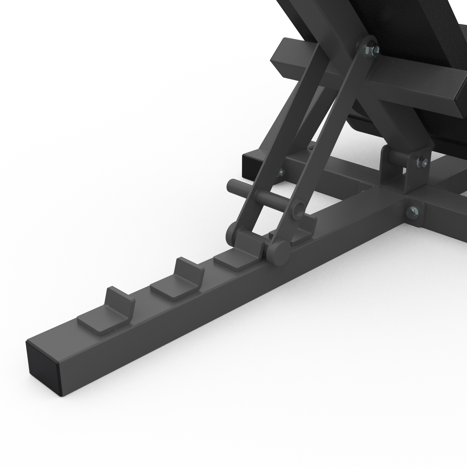 Спинка подушки регулируется в 5-ти положениях. Платформа для ног с рифлёным покрытием. Диаметр дисков для хранения 51 мм, нагрузка на каждый из держателей – до 50 кг.