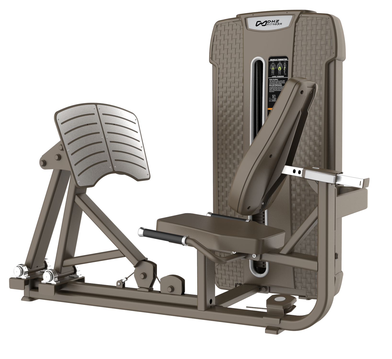 Силовой тренажер «Е-4003 Жим ногами», соответствующий всем требованиям профессионального оборудования. Конструктивные элементы рамы изготовлены из высококачественной стали, покрыты износостойкой двухслойной полимерной краской. Толщина профиля 3 мм имеет большой радиус угла, что придает тренажеру более элегантный внешний вид. Резиновые подпятники обеспечивают устойчивость и предотвращают повреждение полового покрытия в помещении. Для приведения грузоблока в движение используется трос диаметром 5,8 мм. Сиденье и подушки выполнены из вспененного PU, обивка из высококачественной искусственной кожи.