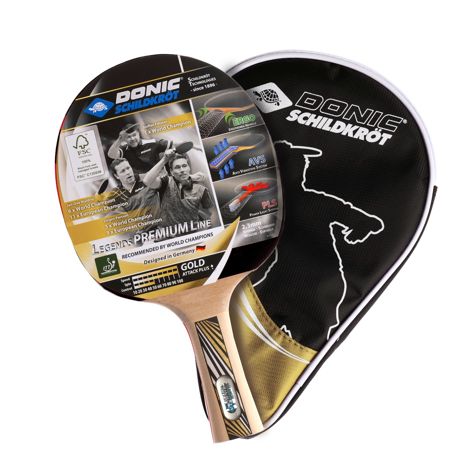Ракетка «LEGENDS GOLD» из премиальной линейки DONIC рассчитана на тип игры Атака+. В комплекте с LEGENDS GOLD идёт чехол по